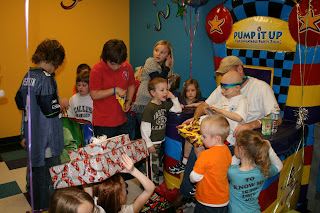 Logan’s birthday party was a blast. He had a great time. We rented out a facility that has party rooms w/ all kinds of bouncy things…slides, basketball, boxing, mazes, etc. By the end of the party everyone was exhausted including the parents. The picture above was just one of many. The others are posted to the right.